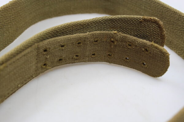 Cinturone da truppa DAK, canapa tendente al verde “oliva”, patta di regolamentazione fatta in canapa, marcata con produttore, lunghezza cm 95. Poco usata, buono stato di conservazione.