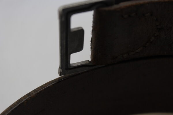 Cinturone fatto in cuoio nero da truppa specifico Polizei, con particolare gancio per la connessione alla fibbia, fatto in alluminio. Lunghezza cm 100. Usato, buono stato di conservazione.