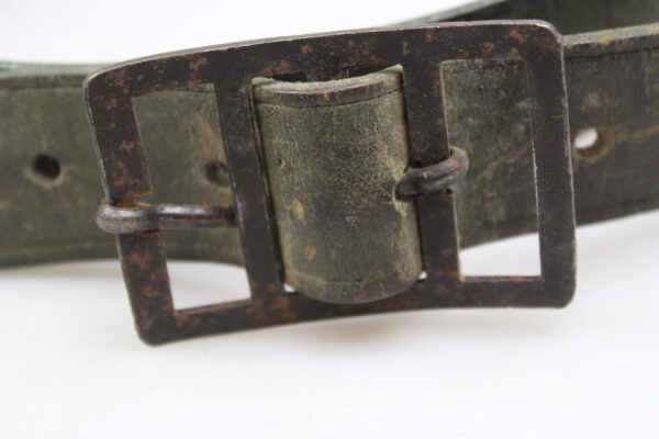 Cinturone da truppa del Regio Esercito Italiano della Seconda Guerra Mondiale, fatto in cuoio grigio/verde. Poco usato, buono stato di conservazione.