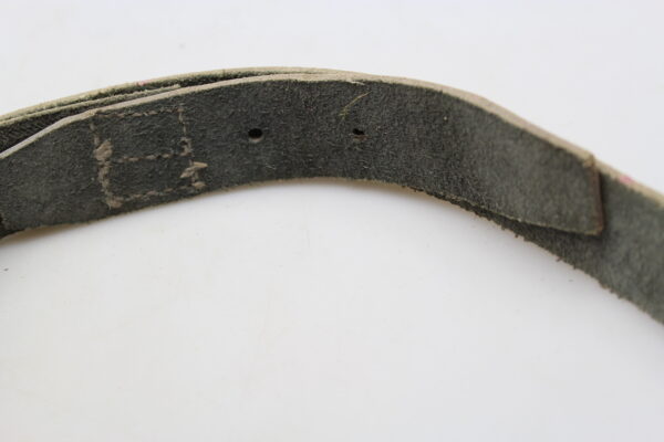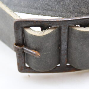 Cinturone da truppa del regio Esercito Italiano della Seconda Guerra Mondiale, fatto in cuoio grigio/verde, completo di fibbia. Buono stato di conservazione.