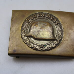 Ottimo cinturone da Ufficiale della Wehrmacht, fatto in cuoio marrone alto 55 mm e lungo cm 120, marcato Wiko 304 Croupon, completo di fibbia a due ardiglioni. Personalizzato nell’interno con il nome del proprietario. Poco usato, buono stato di conservazione.