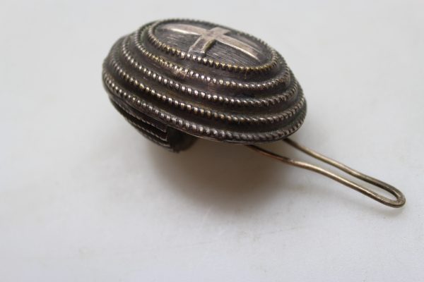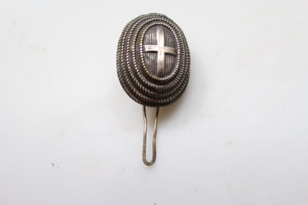 Coccarda Nazionale per chepì Umbertino dei primi del 900′, specifica per Artiglieria, Genio e Sanità. Usata, buono stato di conservazione, bella patina.