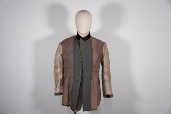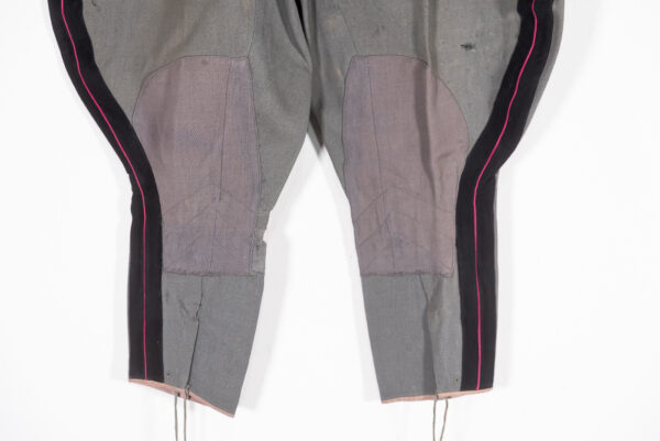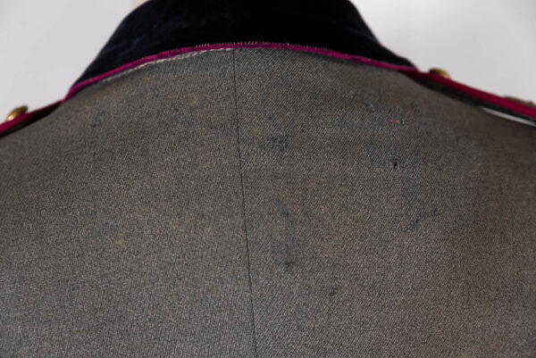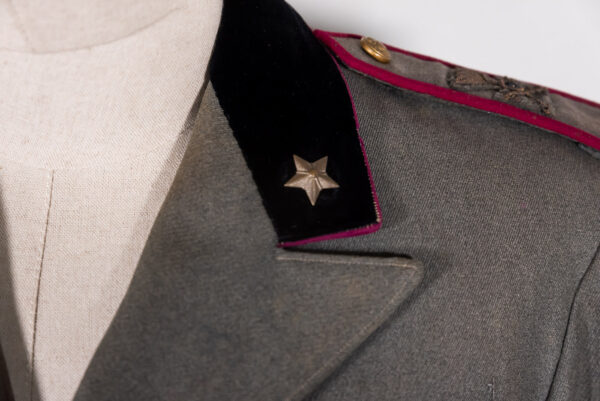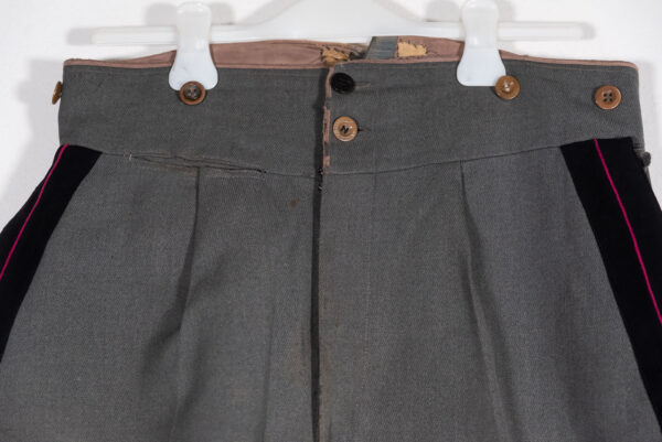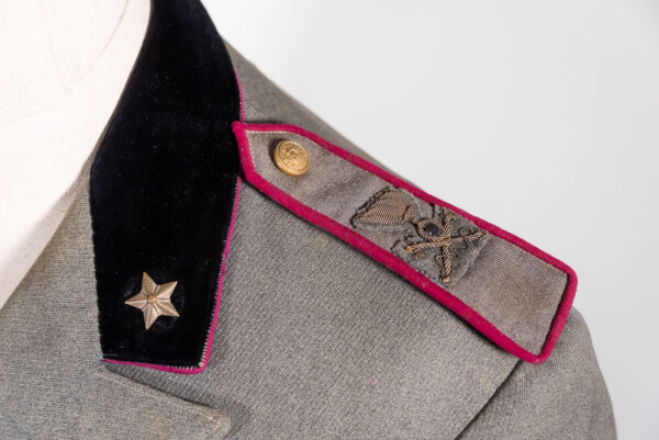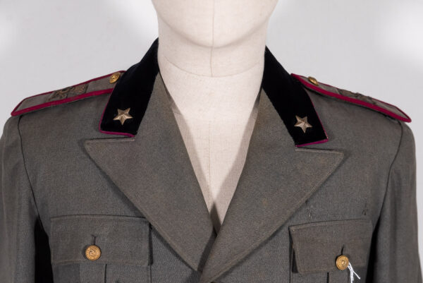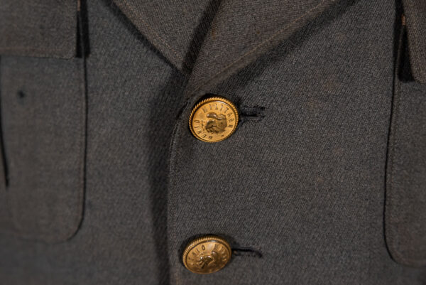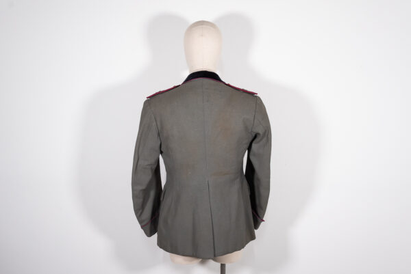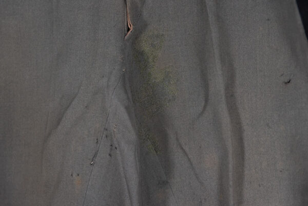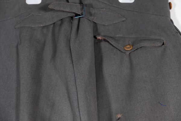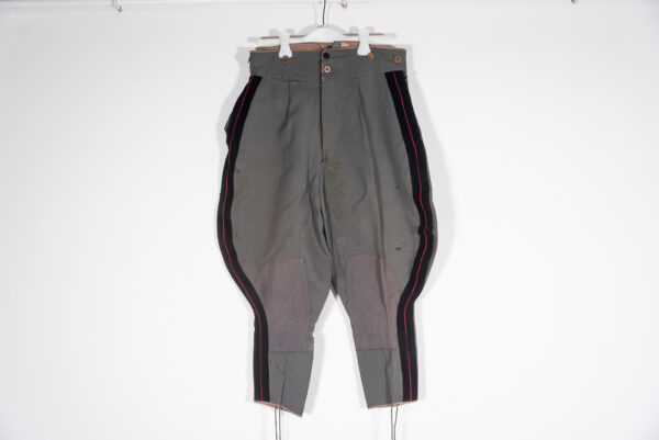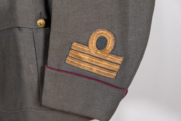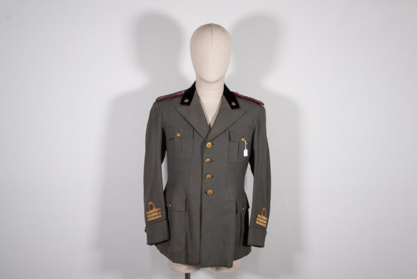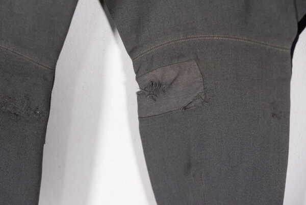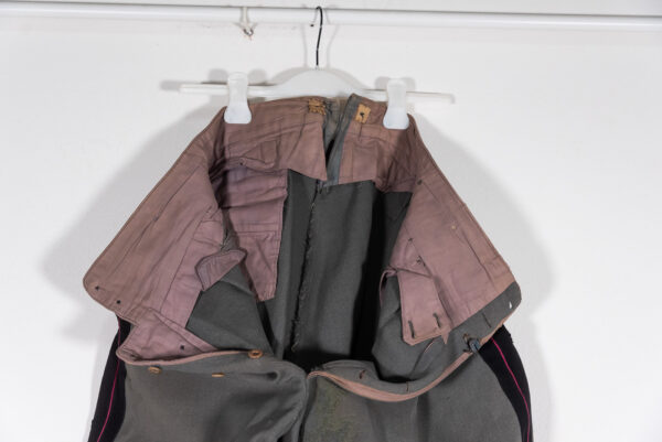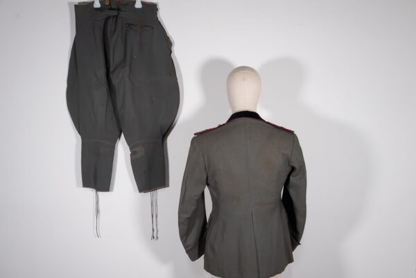 Giacca e pantaloni M.34 da Capitano del Genio Pionieri del Regio Esercito Italiano nella Seconda Guerra Mondiale. Giacca completa dei suoi corretti attributi, pantaloni M.34 a sbuffo, con bande nere con colore d’arma. Usato, buono stato di conservazione.