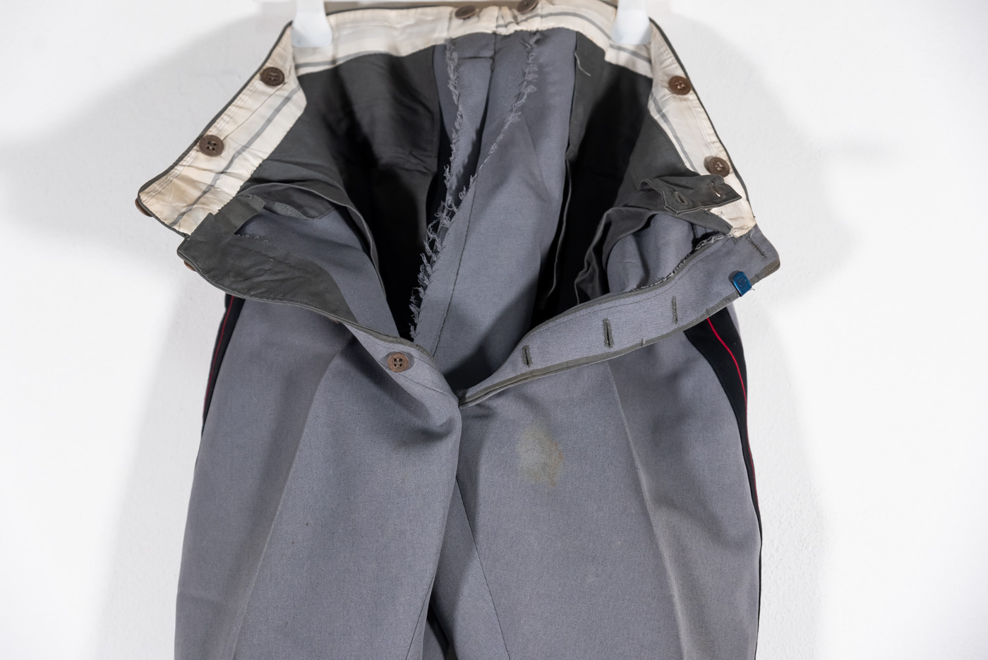 Giacca e pantaloni fatti in gabardine perfettamente “matching”, appartenuti ad un Sottotenente dei Bersaglieri del Regio Esercito Italiano nella Seconda Guerra Mondiale. Giacca completa dei suoi corretti attributi, con etichetta di una nota sartoria Fiorentina, pantaloni in stile retrò M.34 con banda nera con colore d’arma. Poco usata, impeccabile, perfetto stato di conservazione.