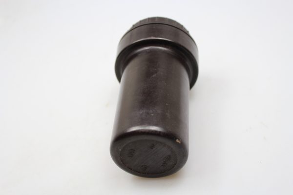 Contenitore per spoletta di artiglieria, fatto in bakelite e marcato con produttore e data 1941. Usato, integro, buono stato di conservazione.