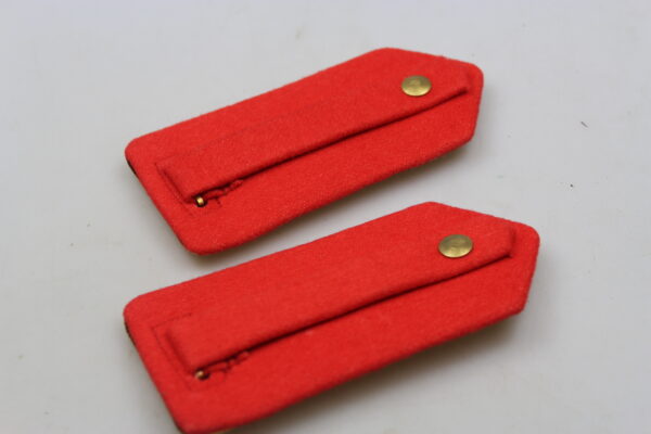 Controspalline M.34 a lastra dorata, da Ufficiale Inferiore di Fanteria del Regio Esercito Italiano, complete di bottoni a vite. Usate, buono stato di conservazione.
