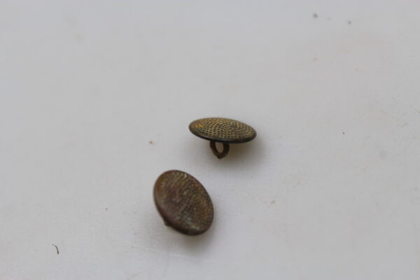 Coppia di bottoni da 14 mm, per fieldcap M.42 e berretto M.43 Wehrmacht. Usati, leggermente ossidati, buono stato di conservazione.