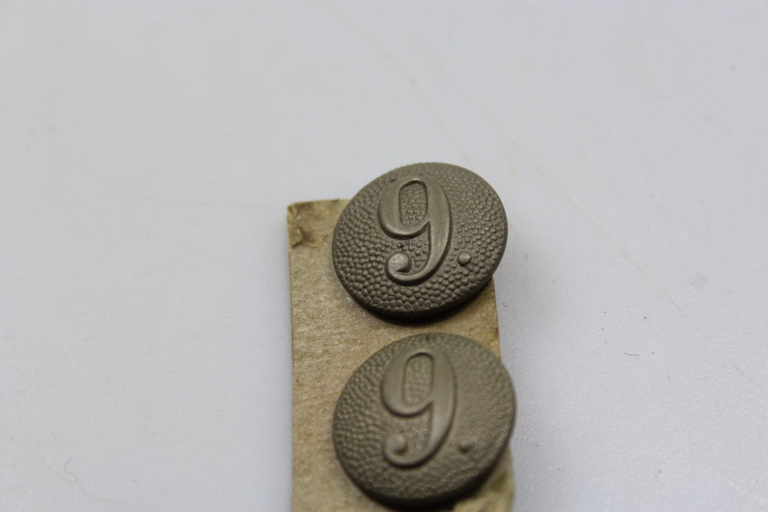 Coppia di bottoni da spalline con numero 9, per giacca profilata precoce oppure Waffenrock. Colorazione feldgrau, mai stati usati.