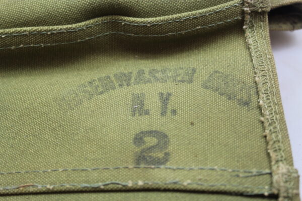 Coppia di ghette “precoci” US Army della Seconda Guerra Mondiale, fatti in robusta tela di cotone in colorazione kaki, marcate con produttore e taglia 2, complete di stringhe. Perfetto stato di conservazione, fondo di magazzino.