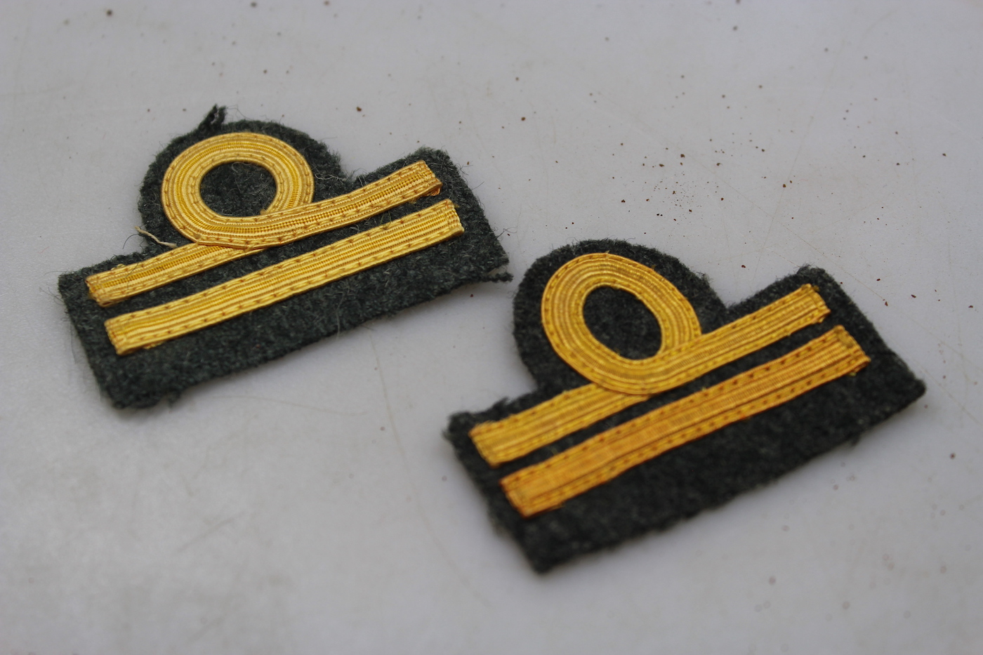 Coppia gradi M.40 da Tenente del Regio Esercito Italiano della Seconda Guerra Mondiale, fatti in rayon su base grigio/verde. Perfetto stato di conservazione.