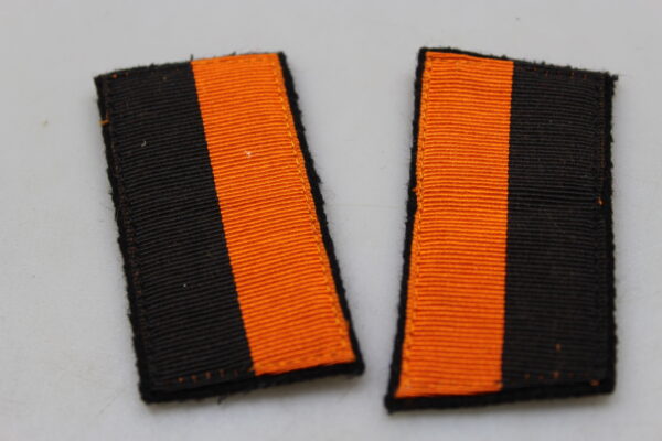 Coppia di mostrine della Divisione “Catanzaro” del Regio Esercito Italiano, con sottopannatura nera ottima per giacche M.34. Fondo di sartoria, mai state usate.