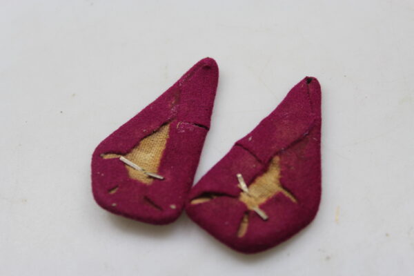 Coppia di mostrine “ridotte” da truppa del Genio Pionieri del Regio Esercito Italiano Seconda Guerraq Mondiale, complete di stellette. Usate, buono stato di conservazione.