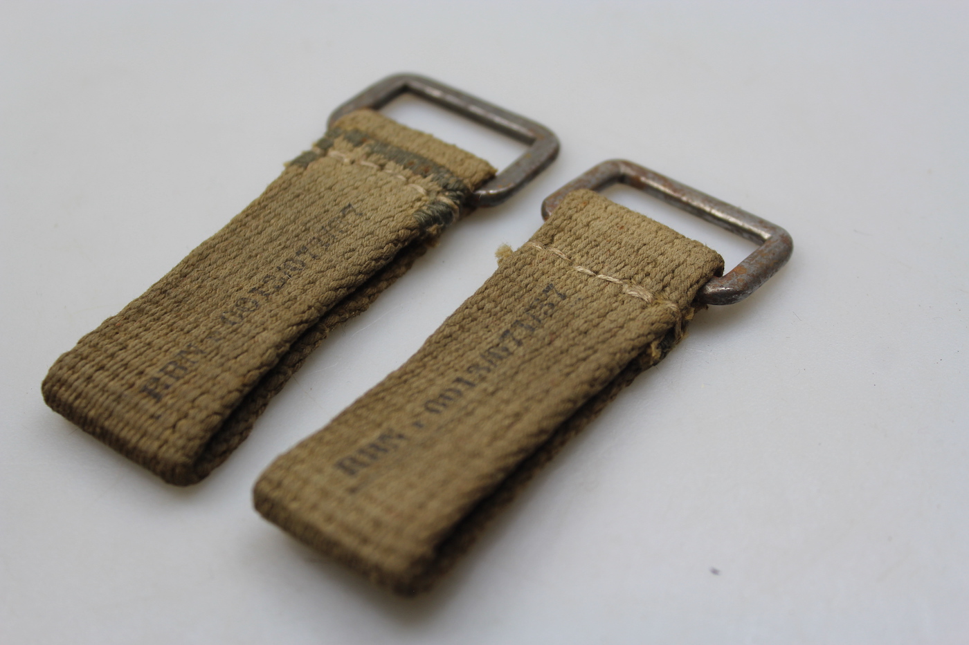 Coppia di passanti fatti in canapa DAK, per connessione degli spallacci a Y con il cinturone in canapa. Usati, buono stato di conservazione.