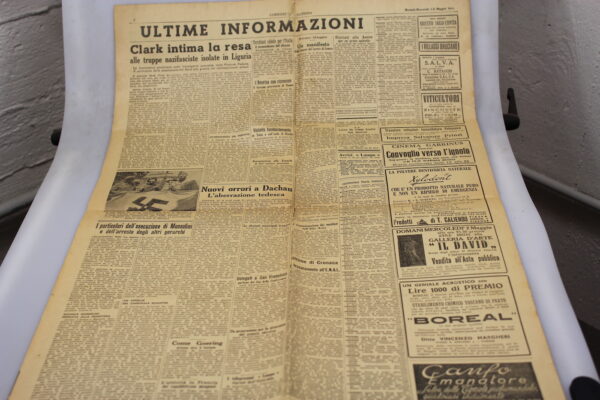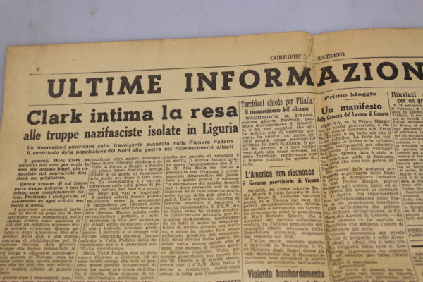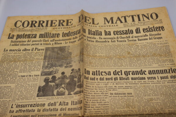 Corriere del Mattino 1-2/5/45.”La potenza militare Tedesca in Italia, ha cessato di esistere”.