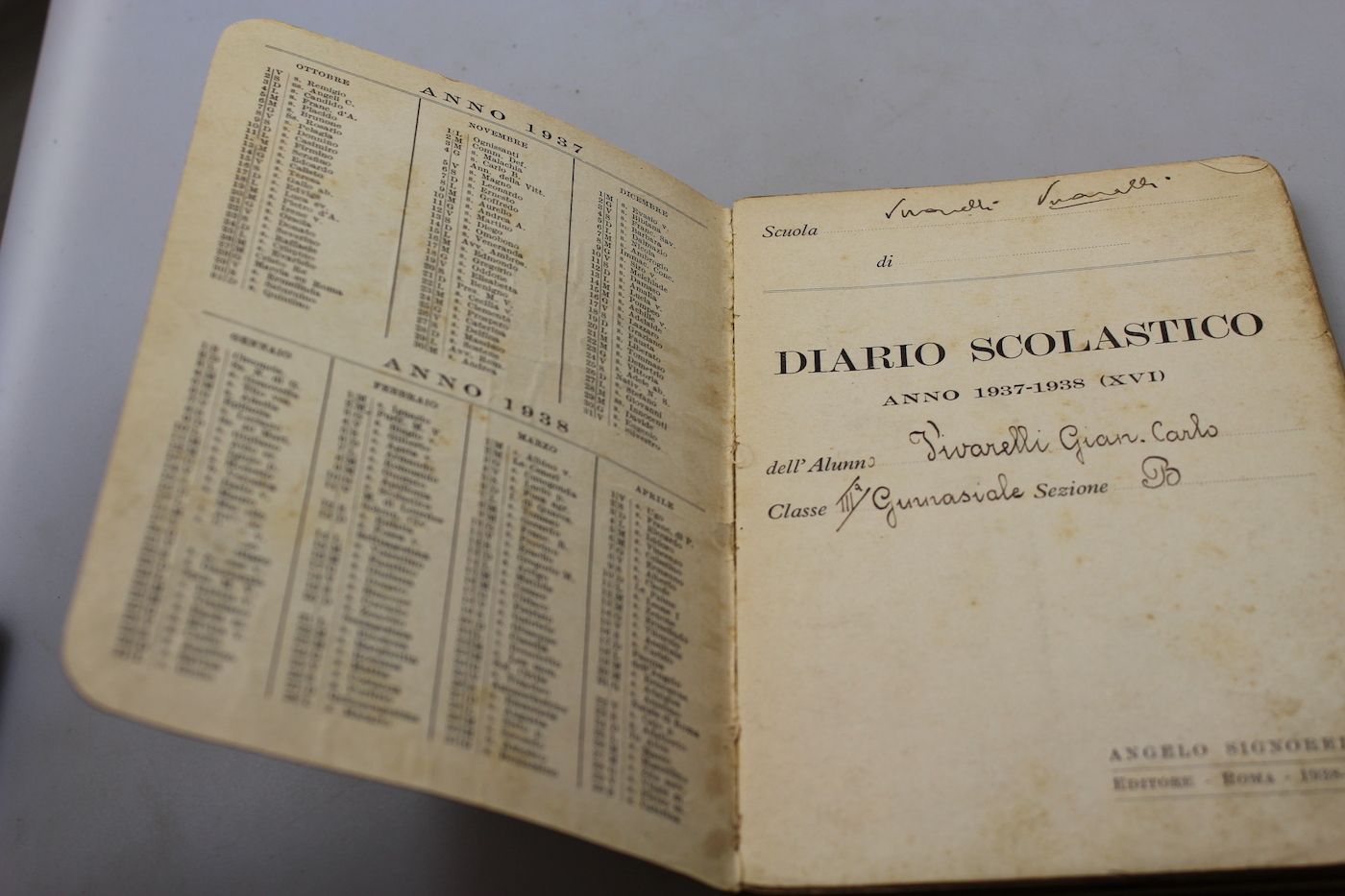 Diario Scolastico 1938 -XVI° E.F. del periodo del Ventennio. Usato, buono stato di conservazione.