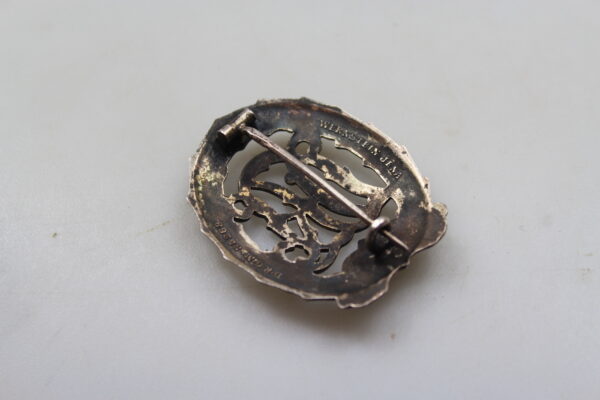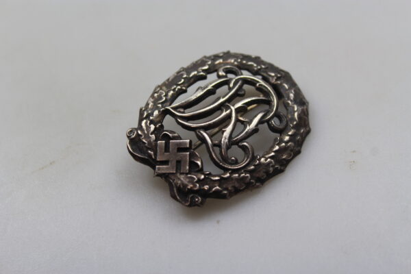DRL, Deutschen Reichsbund für Leibesübungen, distintivo di Seconda Classe “silver” per meriti sportivi nella Wehrmacht, produttore Wernstein-Jena. Usato, buono stato di conservazione.