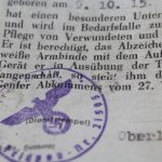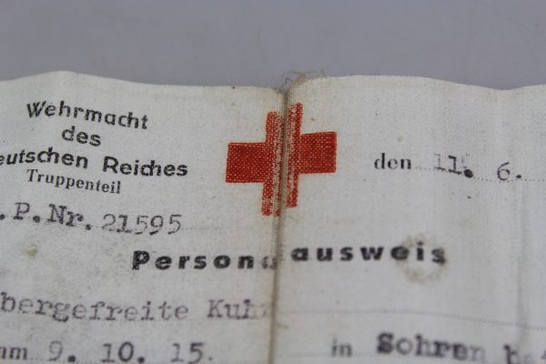 Personal Ausweis – Documento rilasciato ad un Obergefreiter di Sanità, che lo autorizzava a portare al braccio sinistro la fascia di Sanità con croce rossa. Usato, buono stato di conservazione.