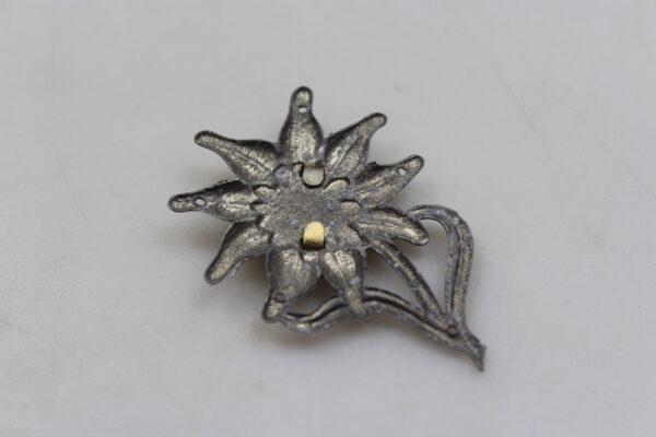 Edelweiss per Bergmutze Gebirgsjager della Heer della Seconda Guerra Mondiale. Fatto in due pezzi. Buono stato di conservazione.