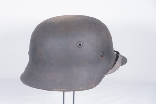 Elmetto M.42 monodecal Heer, vernice antiriflesso, produttore HKP, Sächsische Emaillier und Stanzwerke A.G, taglia 64/57. Completo di interno e sottogola. Usato, complessivamente in buono stato di conservazione.