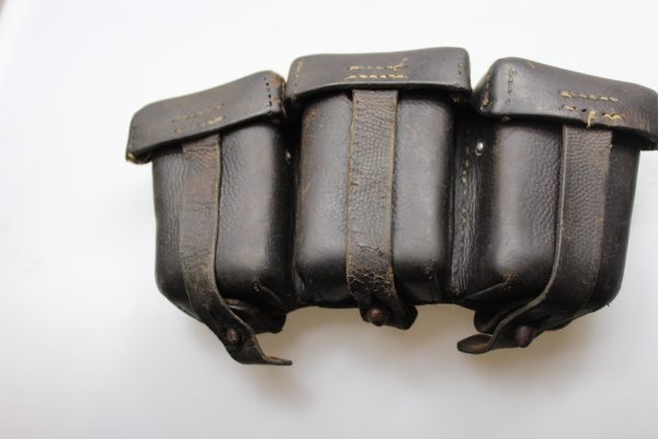 Giberna tripla per caricatori del Mauser Modello 1898 della Prima Guerra Mondiale, marcata con produttore Kern Kleger & Co – Neu- Ulm – 1916. Completo di separatori interni. Usata, buono stato di conservazione.
