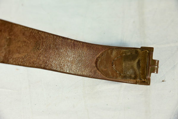 Cinturone da truppa della Hitlerjugend, gancio tipico per organizzazioni paramilitari, lunghezza cm 83, misura consona per ragazzi giovani. Fibbia fatta in ferro verniciato, tipica di fine guerra e con particolare e raro “ponte” applicato. Usato, buono stato di conservazione
