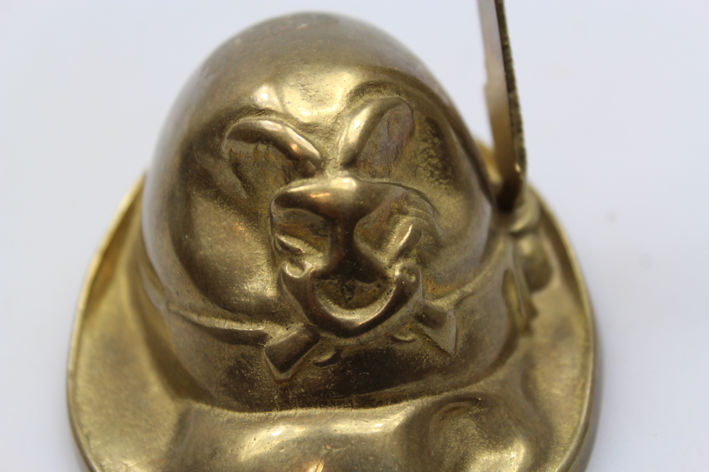 Fermacarte da tavola, souvenir, berretto da Alpino fatto in ottone. Buono stato di conservazione, bella patina.