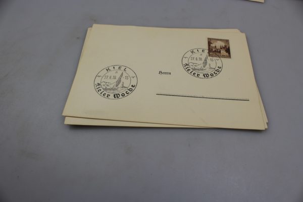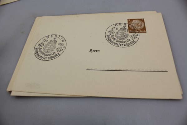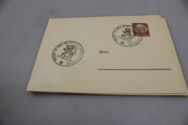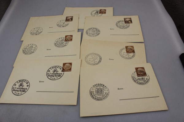 # 7 francobolli diversi tra loro, messi su cartoline postali con interessanti annulli postali. Buono stato di conservazione.