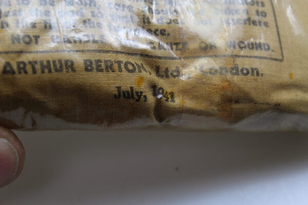 First Aid Dressing del 1941, produttore Arthur Berton Ltd London Luglio 1941. Buono stato di conservazione.
