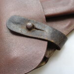Interessante e rara fondina per pistola Mauser HSC, versione fine guerra fatta in Presstoff, con cinghietta in cuoio. Usata, buono stato di conservazione.
