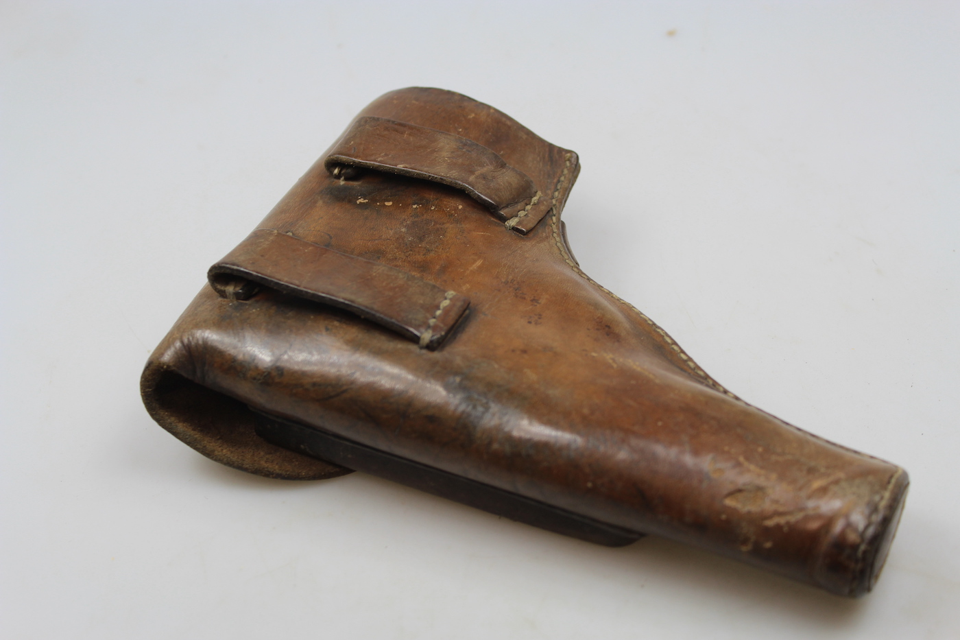 Fondina per pistola P.35 Radom fatta in cuoio marrone, con marchi Tedeschi. Usata, buono stato di conservazione.