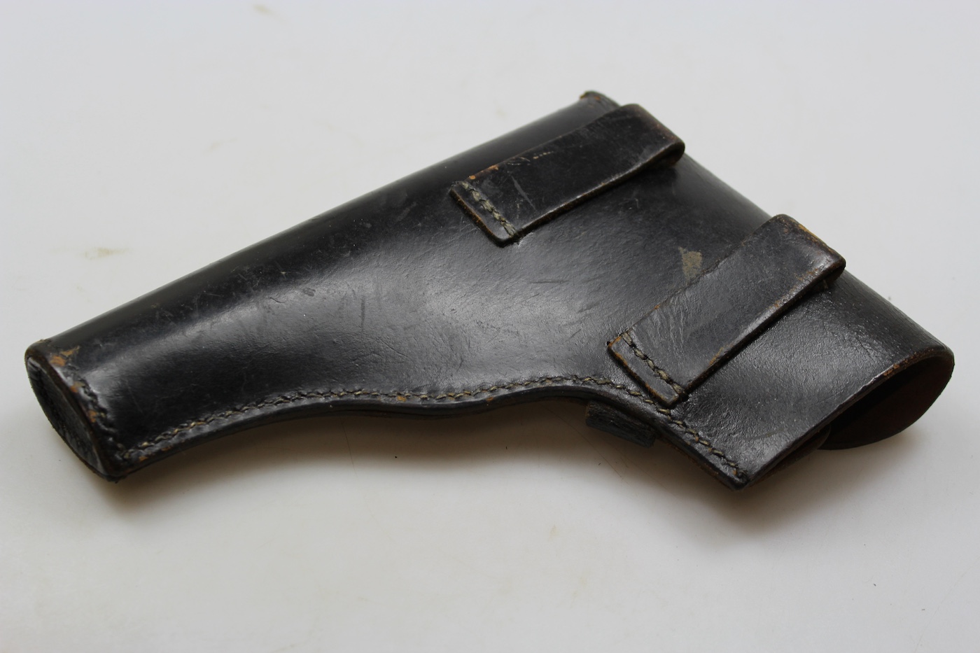 Ottima fondina fatta in cuoio nero per pistola Radom P.35, marcata con produttore con codice a tre lettere e data. Poco usata, perfetto stato di conservazione.