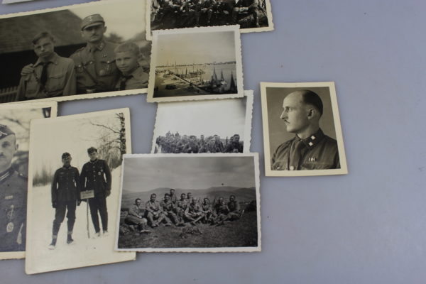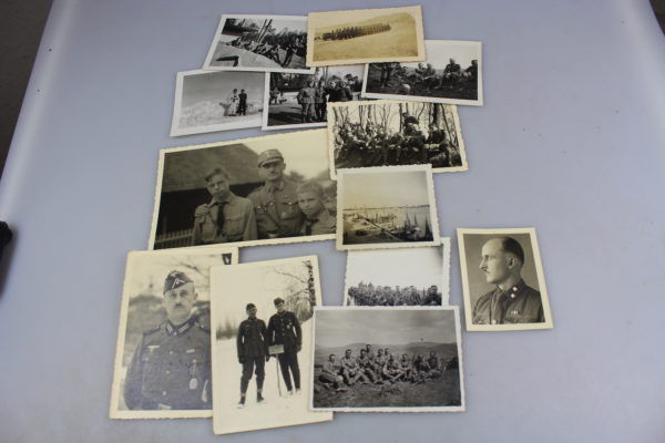 Gruppo di 15 foto appartenute ad una unica persona, alcune foto riguardano il periodo prebellico in uniforme SA e la maggior parte in Uniforme della Heer nel periodo di guerra. Buono stato di conservazione.