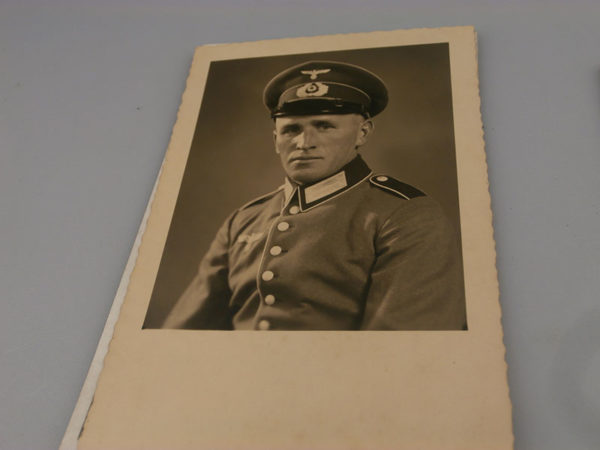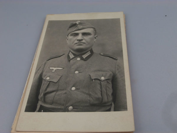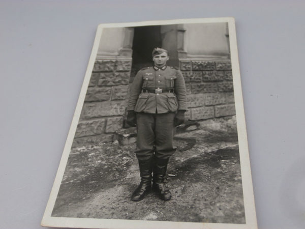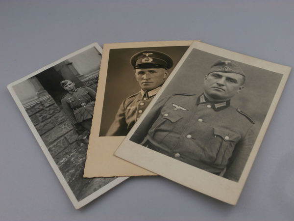 # 3 foto da studio raffiguranti lo stesso soldato di Fanteria Heer in tre pose diverse. Buono stato di conservazione.