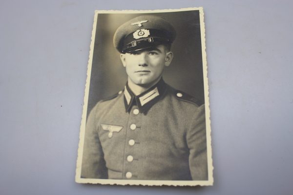 Foto da studio, formato post card, raffigurante un soldato della Heer, in uniforme Waffenrock. Buono stato di conservazione.