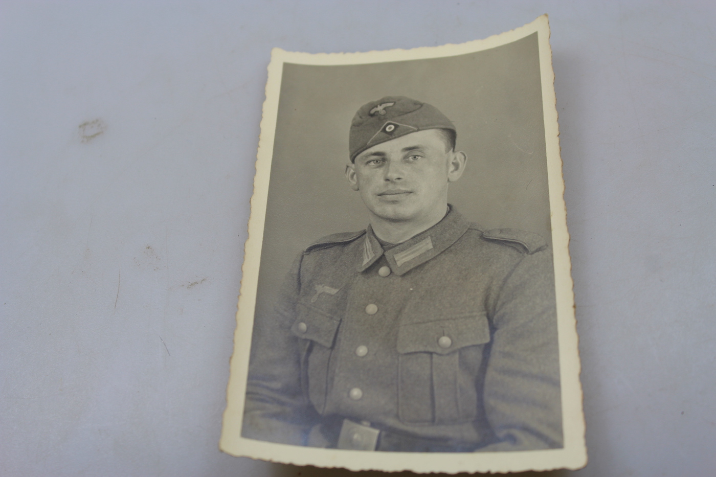 Foto da studio, formato postcard, raffigurante un soldato della Flak decorato con Flakabzeichen. Usata, buono stato di conservazione.