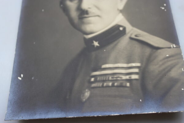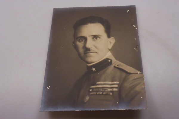 Foto da studio raffigurante un Ufficiale del Regio Esercito Italiano della Prima Guerra Mondiale, dimensioni cm 18×15. Buono stato di conservazione.