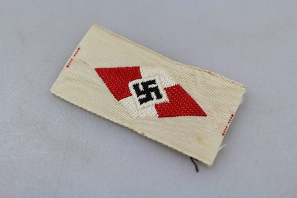 Fregio per copricapo della Hitlerjugend, side cap o berretto da campo, produzione Be-Vo. Mint condition, fondo di magazzino, mai usato.
