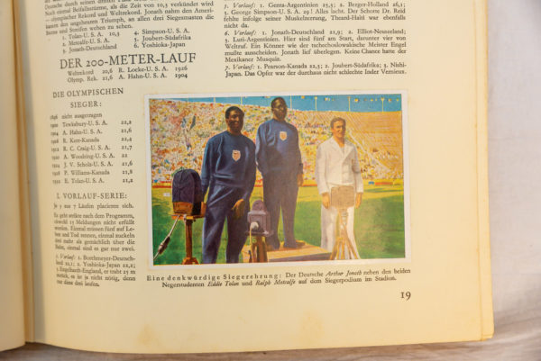 “Olympia 1932”,Giochi Olimpici di Los Angeles, album di figurine che raccontano questa Olimpiade. La raccolta è a cura della Reetsma Cigarettenfabrik di Altona-Bahrenfeld, ovviamente le figurine si reperivano nei pacchetti di sigarette di questa azienda. Completo di tutte le figurine e in perfetto stato di conservazione.