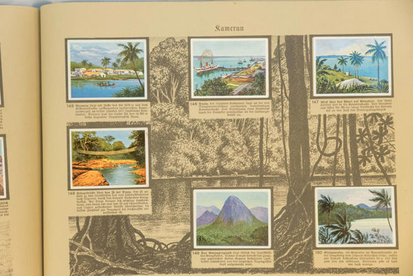 “Deutsche Kolonien” Raccolta di figurine fatta dalla ditta di tabacchi Dresden nel 1936, in cui in maniera illustrata si racconta delle varie colonie Tedesche. Completo di tutte le figurine, usato, complessivamente in buono stato di conservazione.