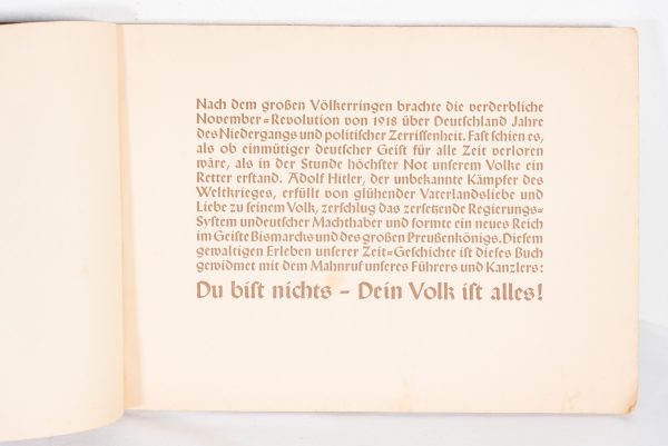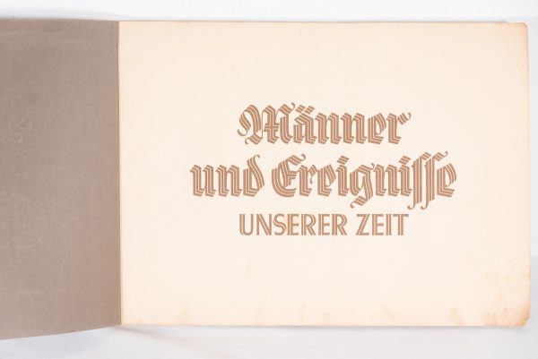 Album di figurine ” Manner und Ereignilfe ”,tradotto “Uomini e. eventi”,album di figurine, che si trovavano gratuitamente a scopo pubblicitario nei pacchetti di sigarette, ( A.G. Zigarettenfabrik ) mostrano i funzionari e gli eventi del partito nazista in Germania tra il maggio 1933 e il giugno 1934. Elencati anche i nomi dei collaboratori. Usato, completo, in buono stato di conservazione, mancante di una sola figurina vedi foto in dettaglio.