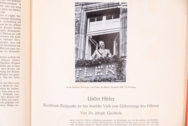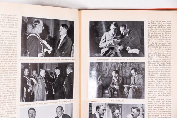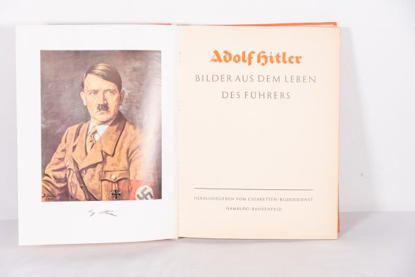 “Adolf Hitler”, 1935 – album di figurine a cura della Cigaretten Bilderdienst di Hamburg Bahrenfeld, le figurine venivano date in omaggio a chi acquistava i loro prodotti, riguardante la vita e il percorso politico di Adolf Hitler. Poco usato, buono stato di conservazione..