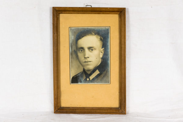 Foto da studio raffigurante un primo piano di un soldato della Heer,in cornice in legno d’epoca. Dimensioni cm 32×22. Buono stato di conservazione, nessun segno di manomissione.