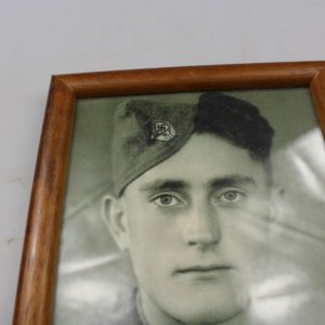 Foto da studio, in cornice di legno d’epoca, raffigurante un Unteroffizier di un Reggimento di Fanteria. Dimensioni cm 27×23. Buono stato di conservazione.