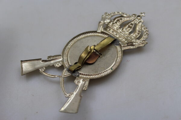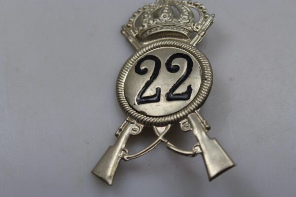 Fregio per copricapo, fatto in lamierino argentato del 22° Reggimento “Cremona”. Usato, buono stato di conservazione.