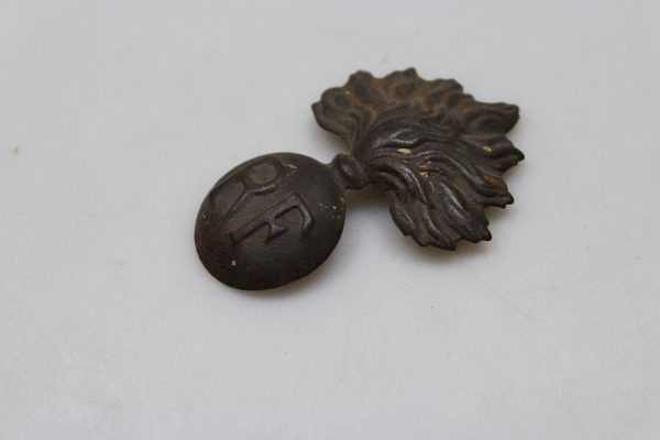 Fregio metallico per elmetto Francese Adrian M.15, Fanteria, Cavalleria, Cacciatori d’Africa e Legione Straniera. Colorazione blue horizon. Usato, buono stato di conservazione.