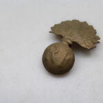 Fregio metallico per elmetto Francese Adrian M.15, Fanteria, Cavalleria, Cacciatori d’Africa e Legione Straniera. Colorazione giallo senape Coloniale. Usato, buono stato di conservazione.