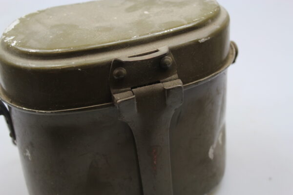 Gavetta fatta in alluminio in colorazione feldgrau, marcature non visibili. Poco usata, buono stato di conservazione.