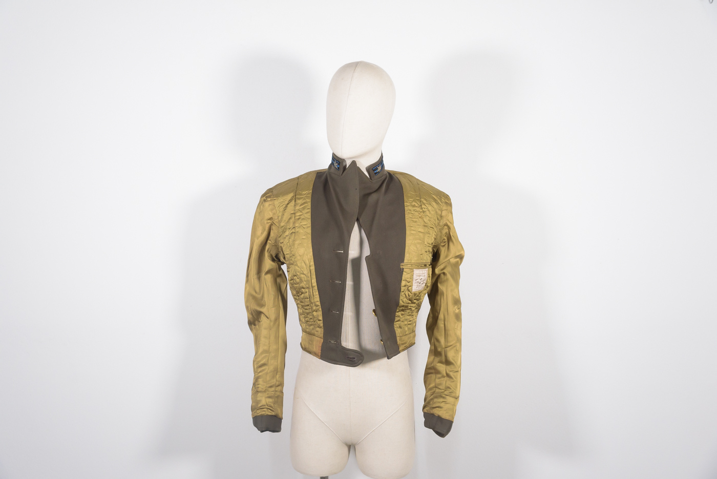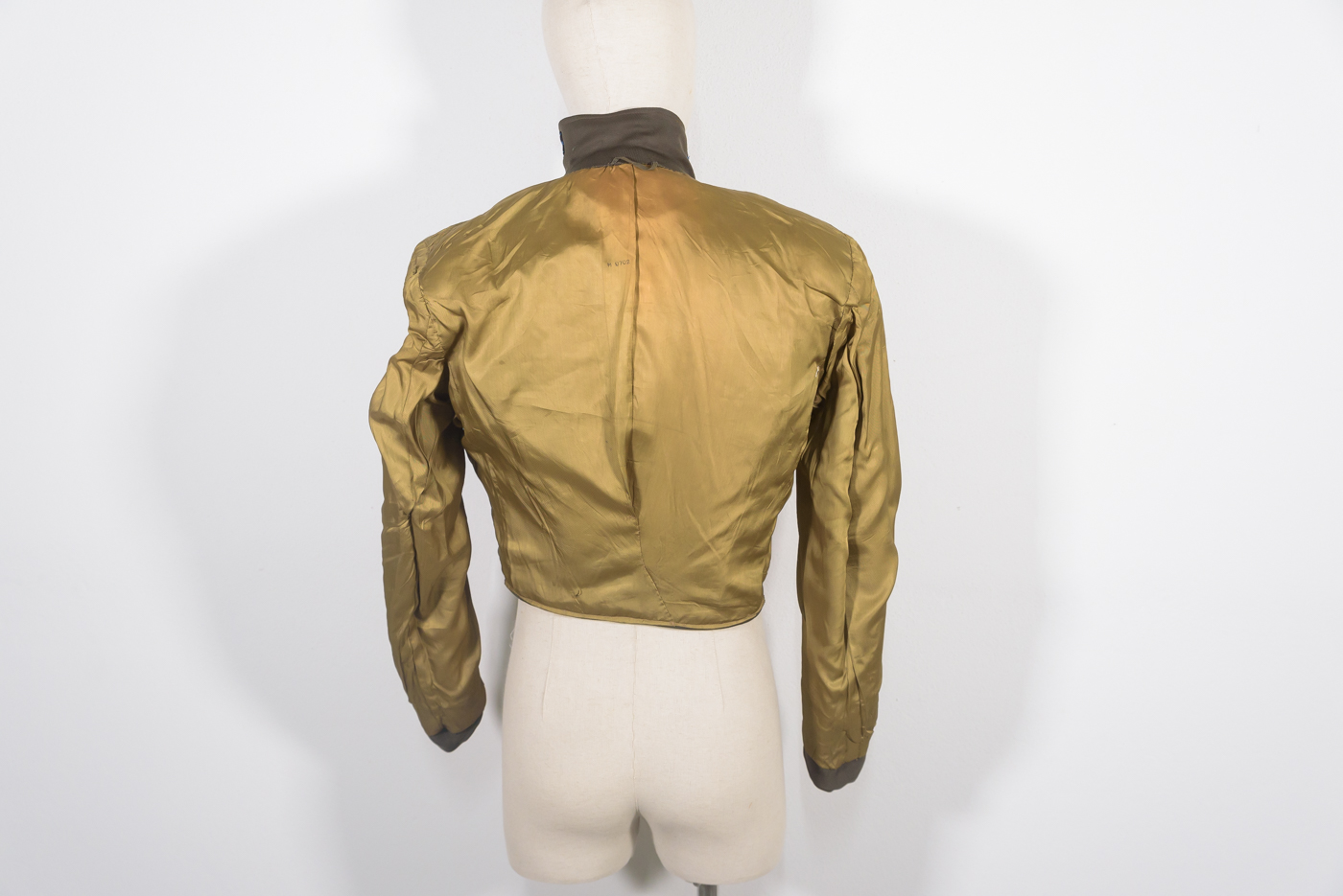 Interessante giacca “chocolate” da Ufficiale US Army, modificata a stile Battledress e usata da un cobelligerante Italiano con grado Capitano, del Gruppo di Combattimento “Legnano”, aggregato alla 5^ Armata US Army il 23 Aprile 1945. Completa dei suoi corretti attributi. Poco usata, buono stato di conservazione