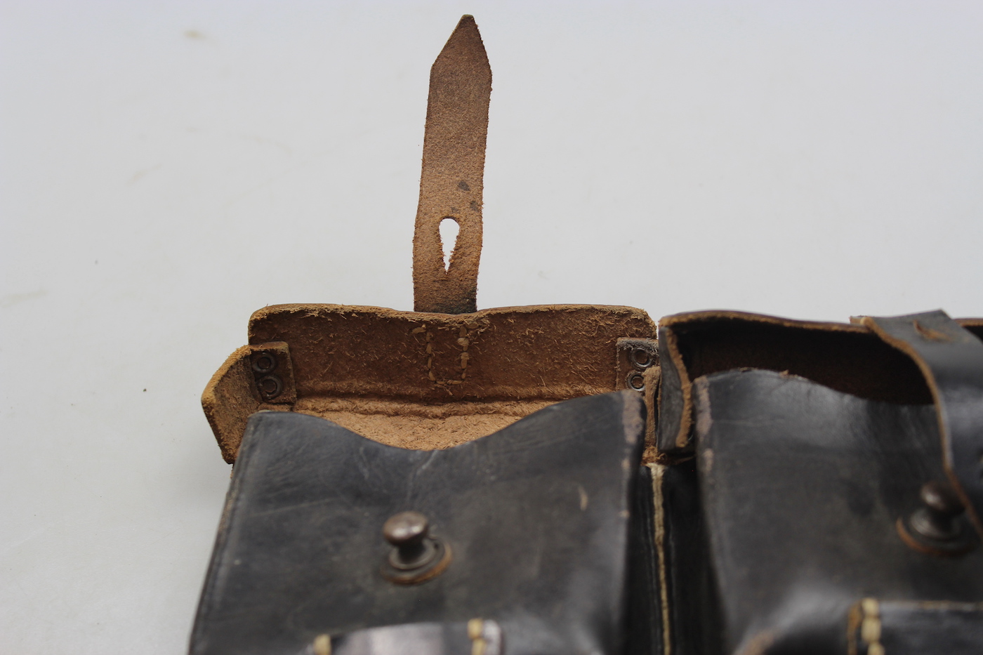 Giberna in cuoio nero, con passanti posteriori in cuoio naturale, per caricatori del fucile semiautomatico Gew.43 della Seconda Guerra Mondiale, marcato ros-44. Mint condition, mai stato usato, fondo di magazzino.