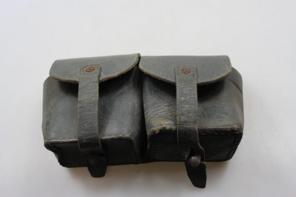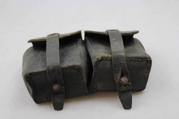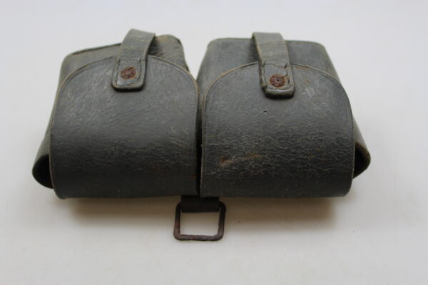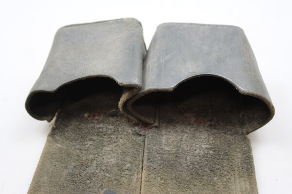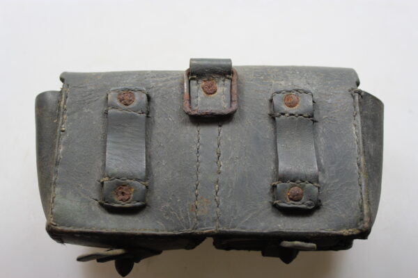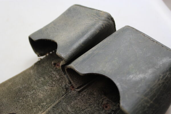 Giberna in cuoio grigio/verde per caricatori del Carcano 91, versione standard.  Poco usata, buono stato di conservazione..